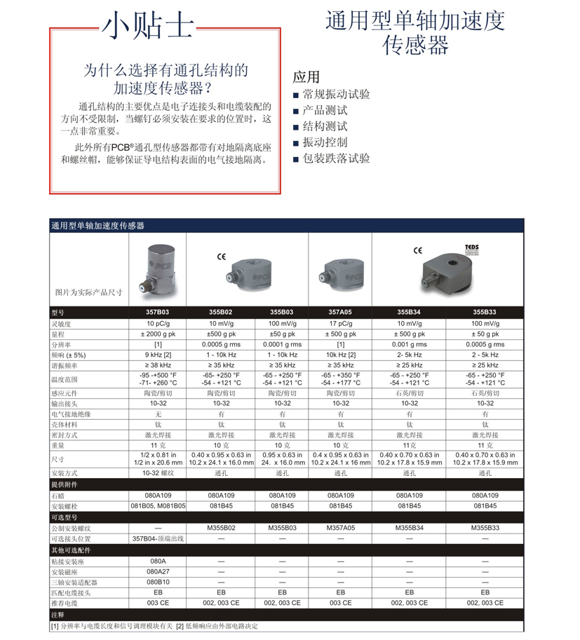 美國PCB加速度傳感器 357B03單軸 加速度傳感器 加速度計(jì) 產(chǎn)地:美國