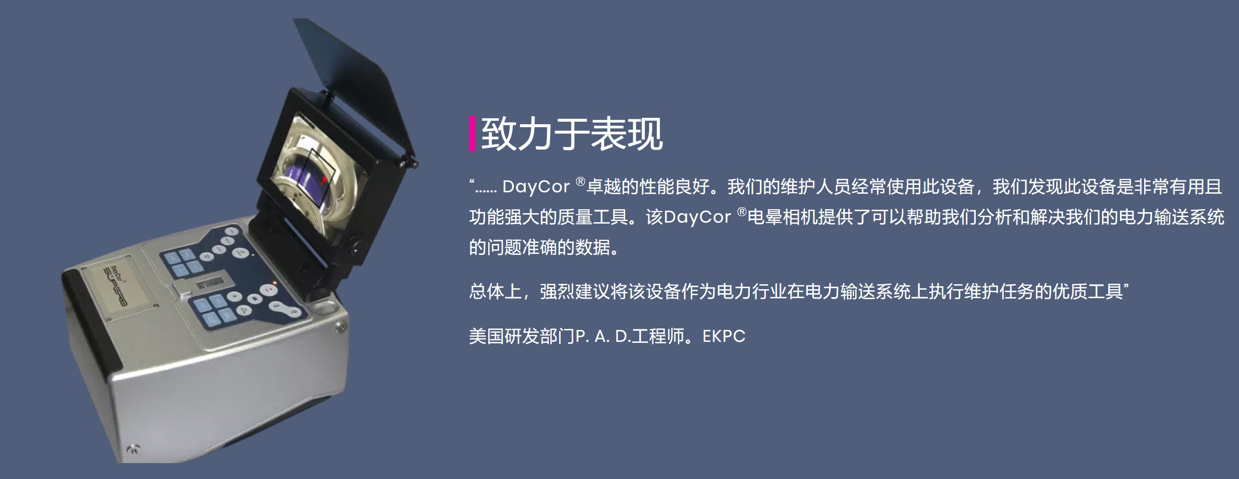 精湛的家庭采用了DayCor ?技術(shù),滿足高電壓實(shí)驗(yàn)室,研究人員,旋轉(zhuǎn)機(jī)修車間和專業(yè)網(wǎng)格考官電暈預(yù)期的敏感性。Superb具有大型可調(diào)式寬敞的透反射式LCD,具有亮度控制功能,可在陽(yáng)光明媚的條件下工作。Superb記錄視頻和發(fā)現(xiàn)的靜止圖像,并提供將其流式傳輸?shù)竭h(yuǎn)程監(jiān)視器。為了能夠檢測(cè)危險(xiǎn)隔室中的電暈PD,Superb可以通過(guò)遙控器進(jìn)行遠(yuǎn)程操作。精湛的技術(shù)可以看到電暈局部放電和發(fā)射源的圖像??梢允褂糜嘘P(guān)環(huán)境條件和GPS的其他數(shù)據(jù)來(lái)增強(qiáng)視覺(jué)信息,并記錄和存儲(chǔ)這些數(shù)據(jù)以進(jìn)行分析和記錄。DayCor ?Superb實(shí)時(shí)顯示并實(shí)時(shí)顯示與電壓相關(guān)的故障。