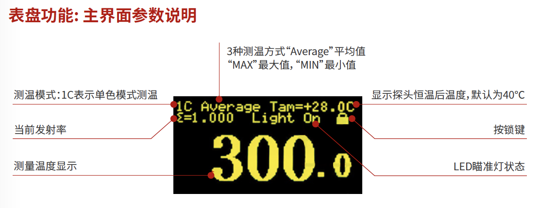 單色高溫計的理論基礎是普朗克黑體輻射定律,通過測量目標物某一狹窄波長范圍內輻射能量的總和,直接計算目標溫度。單色高溫計測量的是一個區(qū)域內的平均溫度,測量值會受發(fā)射率變化、鏡頭污染程度、環(huán)境干擾物以及背景輻射等因素的影響,使用時需要待測目標完全覆蓋視場光斑來保持測溫數據的精準。